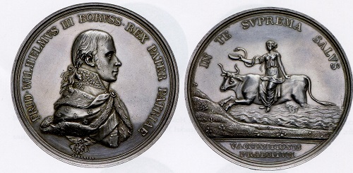 Preußens König Friedrich Wilhelm III. belohnte um 1800 mit dieser Medaille Menschen, die sich für die Kuhpockenimpfung einsetzen und damit der Seuche Einhalt geboten.