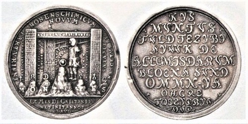 Der luxuriös in Saus und Braus lebende Preußenkönig Friedrich I. und seine korrupte Klientel versprachen sich von dem Goldmacher Cajetano Berge von Dukaten und Talern. Als der betrügerische Adept aufflog, endete er 1709 am Galgen. Die Inschrift auf der Rückseite der vom Gothaer Stempelschneider Christian Wermuth geschaffenen Medaille ergibt, wie seine Gaukeleien, keinen Sinn.