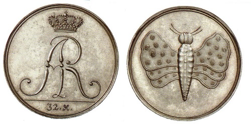 Auch die sächsisch-polnischen Schmetterlingsmünzen geben manche Rätsel auf. Ob sie wirkliches Geld waren oder nur Spielmünzen in unterschiedlichen Größen bleibt dahin gestellt. Neben ganzen Talern zu 32 Groschen mit der Darstellung eines Schmetterlings sowie dem königlichen Monogramm AR (Augustus Rex) gibt es Ausgaben zu 16, acht, vier und einem Groschen. Der Schmetterling wird als Roter Apollo gedeutet, der eine Flügelspannweite bis acht Zentimeter besitzt. Warum ein solches Insekt auf Münzen dargestellt wurde, ist nicht ganz klar. Angeblich soll mit ihm August der Starke gemeint gewesen sein, den man mit dem antiken Gott Apoll verglich. Da Schmetterlinge als Symbole des ewigen Lebens galten, mögen die Münzen den Wunsch ausgedrückt haben, dass der zu ihrer Entstehungszeit zwischen 1707 und 1709 in militärische und politische Bedrängnis geratene Herrscher Unsterblichkeit erlangt, was dann tatsächlich eintrat. Denn während man von seinen Vorgängern und Nachfolgern kaum etwas weiß, ist August der Starke bis heute unvergessen.