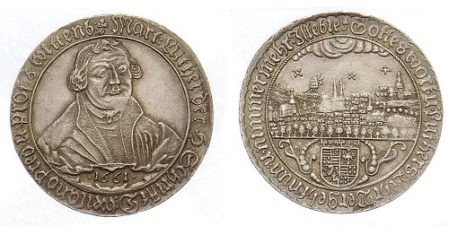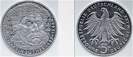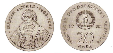 Siehe zu Martin Luther Einträge auf dieser Internetseite (Münzen und Medaillen) vom 12. 2. 2022 (Luther und der Schwan), 21. 2. 2922 (Friedrich der Weise) und 21. 2. 202 (Wartburg)