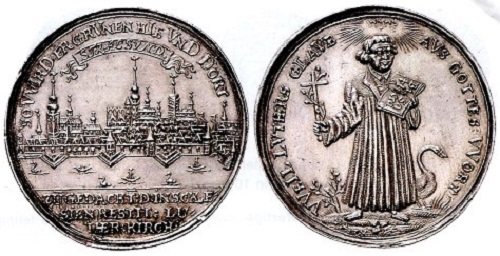 Darunter sind sächsische Prägungen von 1617, die daran erinnern, dass der Augustinermönch einhundert Jahre zuvor mit seinen 95 Thesen wider den Ablasshandel und andere Auswüchse in der Papstkirche an die Öffentlichkeit trat. Die Augsburger Konfession von 1530, die den protestantischen Fürsten Glaubensfreiheit "bis zum nächsten Konzil" zusicherte, wurde 1630 ebenfalls durch zahlreiche Gedenkmünzen und Medaillen gefeiert. Sie und viele andere in das große Thema "Martin Luther und die Reformation" gehörende Ausgaben sind in der Literatur gut aufgelistet. Erwähnt seien das informative Buch von Hugo Schnell "Martin Luther und die Reformation auf Münzen und Medaillen" (München 1983) sowie Inge Freese und Joachim Datow "Martin Luther und seine Zeit auf Münzen und Medaillen" (Schwetzingen 1983) und weitere Publikationen. Wichtig ist der 2019 von der Wartburg-Stiftung herausgegebene Katalog "Reformatio in Nummis. Geschichte der Reformation und des Protestantismus" der Sammlung Rainer Opitz. Bearbeitet von Detlev Hölscher, Elisabeth Doerk, M. A. Klaus-Peter Brozatus, kamen die sechs Bände mit 3.577 Seiten 2018 und 2019 im Numismatischen Verlag Fritz Rudolf Künker heraus. Erfasst sind rund 6.000 numismatische Zeugnisse aus der Zeit von 1519 bis 2017. Sammler kennen auch die barock weitschweifigen Kataloge wie das Buch von Christian Juncker über das "Guldene und Silberne Ehren-Gedächtniß des Theuren Gottes-Lehrers D. Martini Lutheri" (Schleusingen 1706).