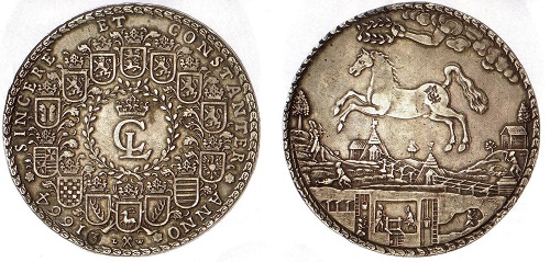 Große und kleine Fürsten ließen sich auf ihren Geprägen als stolze, unnahbare Reiter abbilden. Sie hatten das Privileg, von Bildhauer auf hohen Sockeln dargestellt zu werden. Zu nennen sind hier vor allem die großen, schwergewichtigen und teuren Löser braunschweigischer Herzöge im Wert von mehreren Talern aus dem 16. und 17. Jahrhundert. Beliebte Motive auf diesen silbernen Riesen waren der Herzog mal nach links, mal nach rechts reitend, mal mit Hut und mal ohne, in spanischer Hoftracht oder voller Rüstung. In größerer Zahl sind Löser mit Darstellungen von Pferden über Bergbaulandschaften überliefert. Wer sich nicht auf dem Pferd sitzend darstellen wollte, beließ es mit einer stehenden Figur oder einem Brustbild. In das Thema "Pferde auf Münzen und Medaillen" passen auch Prägungen, die anlässlich von Pferderennen und anderen sportlichen Ereignisse zur Auszeichnung der Siegel, aber auch zu Erinnerungszwecken an Teilnehmer vergeben wurden und werden. Hier systematisch nach Beispielen zu suchen, ist eine ebenso interessante wie reizvolle Aufgabe.