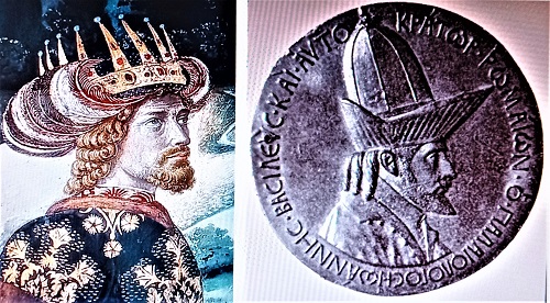 Der byzantinische Kaiser Johannes VIII. Palaiologos blieb 1438/39 in Ferrara mit seinem Versuch erfolglos, die Ost- und die Westkirche zu vereinen. Dargestellt ist er auf einem Gemälde von Benozzo Gozzoli und einer von Pisanello signierten Medaille.