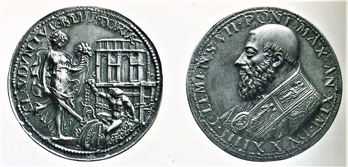 Ein Meisterwerk der Medaillen- und Prägekunst ist die von Benvenuto Cellini geschaffene Medaille aus dem Jahr 1534 mit dem Bildnis von Papst Clemens VII. und der Allegorie des über den Krieg triumphierenden Friedens.