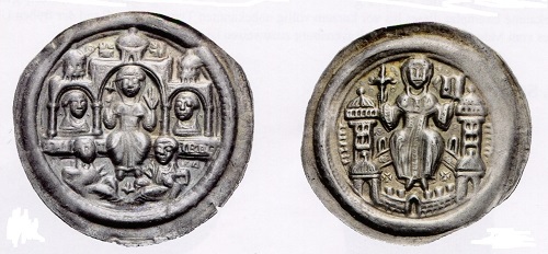 Die auf Heinrich I. verweisenden Schrift- und Bildkürzel laden nach Meinung der damaligen Jury dazu ein, sich intensiv mit der Geschichte Quedlinburgs zu befassen. Die auf der Goldmünze dargestellte Damenstiftskirche ist dem Heiligen Servatius gewidmet und birgt die Gebeine des 936 verstorbenen Königs Heinrich I. und seiner Gemahlin Mathilde, der Gründerin des adligen Damenstifts, deren Äbtissinnen im 12. Jahrhundert, einem Trend der Zeit folgend, eigene Münzen prägen ließen. Auf diesen Brakteaten aus hauchdünnem Silberblech ist Beatrix II., die Vorsteherin der Fürstabtei Quedlinburg, mal allein in einer Architekturkulisse sitzend, mal gemeinsam mit dem als Vogt der Abtei tätige Pfalzgraf Friedrich II. abgebildet. Porträtähnlichkeit haben die Stempelschneider von damals nicht angestrebt. Wichtig war bei diesen zerbrechlichen Hohlpfennigen, so ihr anderer Name, nicht angestrebt. Da das von adligen Damen bewohnte Stift das Münzrecht besaß, hat es dieses einträgliche und prestigeträchtige Privileg auch später vereinzelt genutzt.