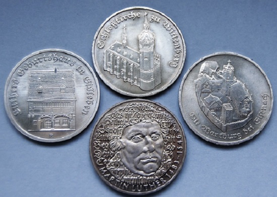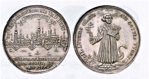Kaum eine Persönlichkeit der deutschen Geschichte ist, von Kaisern, Königen und Fürsten abgesehen, ist so oft durch Medaillen und Münzen geehrt worden wie Martin Luther. Regelmäßig wurde seiner bei Jahrhundertfeiern der Reformation gedacht. 1617 erinnerte man mit in Ländern und Städten, die sich Luthers Lehre angeschlossen hatten, daran, dass der Augustinermönch am 31. Oktober 1517 seine 95 Thesen wider den Ablasshandel und andere Auswüchse innerhalb der Papstkirche an die Wittenberger Schloss- und Universitätskirche geschlagen hat. Die mutige Tat brachte dem Wittenberger Professor große Popularität ein, gefährdete aber auch sein Leben. Indem der sächsische Kurfürst Friedrich der Weise ihn auf der Wartburg bei Eisenach als "Junker Jörg" unter seinen Schutz stellte, bewahrte er ihn vor dem Zugriff kaiserlicher Häscher und sicher auch vor dem Tod als Ketzer auf dem Scheiterhaufen wie 102 Jahre zuvor Jan Hus, der während des Konzils zu Konstanz als Ketzer öffentlich verbrannt wurde.