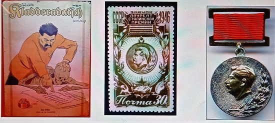 Ab und zu kommen Stalin-Medaillen und Abzeichen bei Auktionen zum Aufruf, sind aber auch auf Münzmessen anzutreffen. An der Spitze steht der Stalinpreis, die höchste zivile Auszeichnung der Sowjetunion. 1941 gestiftet, wurden mit der tragbaren Medaille und einer Geldprämie herausragende Leistungen auf wissenschaftlichem, literarischem, künstlerischem oder musikalischem Gebiet gewürdigt. Der Preis wurde nach 1954 als Leninpreis bezeichnet, als Nachfolger wurde 1966 der Staatspreis der UdSSR vergeben. Bertolt Brecht war einer der Träger des Stalin-Friedenspreises. Er habe die Hälfte des Preisgeldes auf sein Schweizer Konto überweisen lassen, heißt es in der Stasi-Gedenkstätte Berlin-Hohenschönhausen, die 2018 eine Ausstellung über den "Roten Gott Josef Stalin" veranstaltet und die Preismedaille mit anderen Devotionalien zeigte.