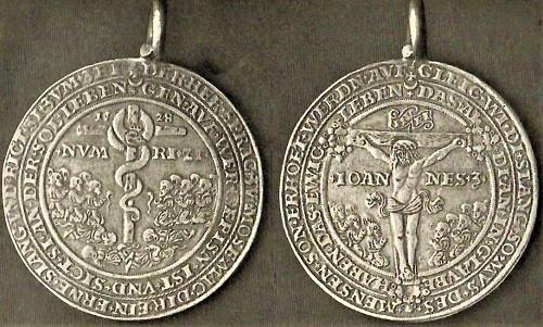 In der Goetheschen Medaillensammlung liegen meistens Stücke aus unedlem Metall. Bisweilen kamen auch Prägungen aus Silber und Gold hinzu, hier ein Pesttaler aus Sankt Joachimsthal von 1528.