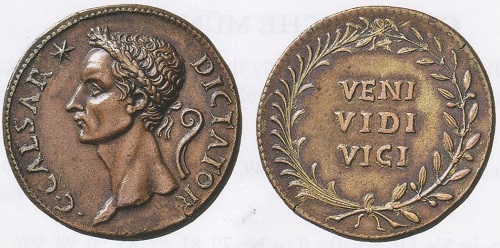 Natürlich wären Goethe originale Römermünzen lieber gewesen, aber er begnügte sich auch mit den von Antonio Cavino in Padua gefertigten Nachbildungen, hier Bronzemünze von Julius Caesar.