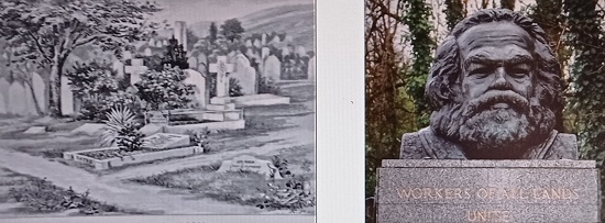 "Das Kapital" und andere Schriften, von denen die Ausstellung alte Drucke und einige Handschriftenproben zeigt, lesen sich alles andere als einfach. Und diejenigen, die sich nach Marx' Tod durch die Texte kämpfen mussten, verstanden unter den Aussagen je nach politischem Standort stets etwas anderes. Gleich am Beginn der Ausstellung begegnen wir Karl Marx als eine Art Übervater mit wallendem Haupthaar und mächtigem Bart. Daneben zwei Bilder von seinem Grab auf dem Highgate Cemetery in London - einmal mit einfacher Inschriftenplatte ohne Kreuz und zum anderen mit einer imposanten Büste und dem Motto auf dem Kommunistischen Manifest "Proletarier aller Länder vereinigt euch". Die Ausstellung zeigt beispielhaft an den Bildern, wie man Karl Marx im 19. Jahrhundert sah und wie man ihn später in der kommunsitischen Welt zum "Klassiker des Marxismus-Leninismus" erhob und so wie er auch in Gestalt des Marx-Engels-Denkmals im damaligen Ost-Berlin gefeiert wird.