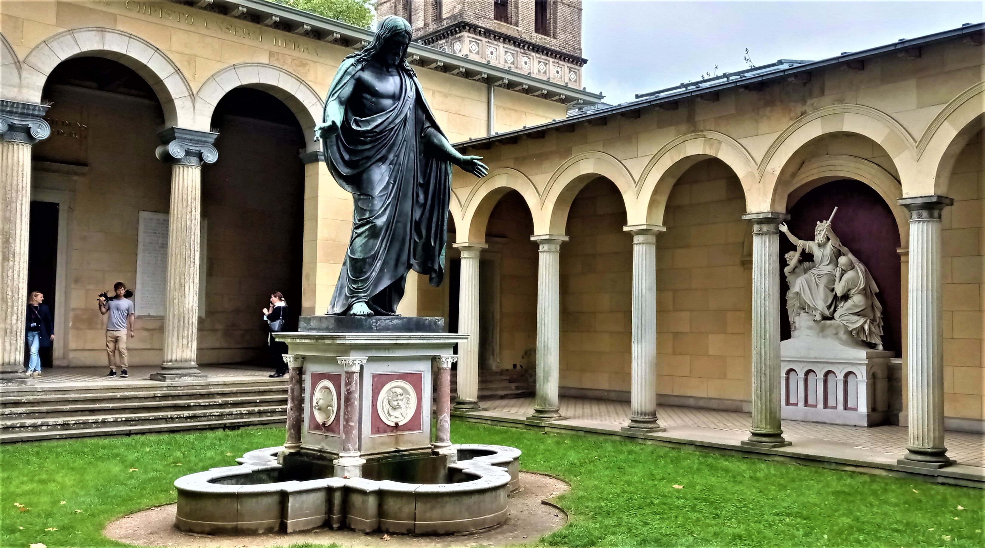 Umgeben ist die Kirche von einem zum Innenhof mit der Christusstatue offenen Säulengang, auf dem man auch zum Mausoleum gelangt.