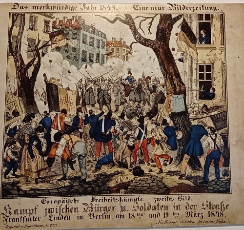 Dass irgendwann in der preußischen Haupt- und Residenzstadt Berlin ein Aufstand ausbrechen würde, war vor 175 Jahren abzusehen. Am 24. Februar 1848 war in Frankreich nach gewaltsamen Unruhen die Königsherrschaft gefallen und die Republik ausgerufen worden. Österreich und seine Kronländer wurde ebenfalls von heftigen heftigen Aufständen geschüttelt. Vom neuen Kaiser Franz Joseph erhofften sich die Menschen Recht, Freiheit, demokratische Mitwirkung an den öffentlichen Belangen und Verbesserung ihrer Lebensverhältnisse. Doch wurden sie in ihren Erwartungen weitgehend enttäuscht. Ziel war es überall, liberale und demokratische Verhältnisse herzustellen, die Macht der Fürsten und des Adels einzuschränken oder gar abzuschaffen, Pressefreiheit zu gewähren und die Völker an der Politik zu beteiligen. Mit ihren Erhebungen strebten die Menschen in Ungarn, Böhmen, Polen und Italien ihre Freiheit und Unabhängigkeit an, hatten damit aber geringen Erfolg.