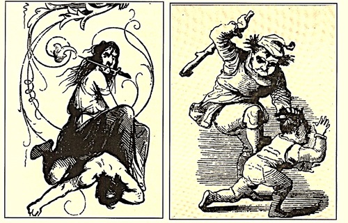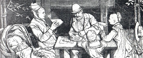 Das Märchen vom Reichtum und der Not aus dem Jahr 1843 wurde mit drastischen Zeichnungen illustriert. Finsteren Blicks und mit einem Dolch bewaffnet, macht sich die „Not und Armut“ bereit, die Reichen das Fürchten zu lehren. Prügelstrafe statt geduldiger Erziehung war gang und gäbe und wurde auch in Armen- und Besserungsanstalten praktiziert.
