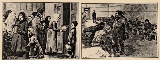 Die Armen wohnten, wenn sie überhaupt eine Unterkunft hatten, in dunklen, feuchten Löchern, in denen sich mehrere Personen ein Bett und wenige Brocken Brot teilen mussten. Das bisschen Lohn, den die Väter nach Hause brachten, war schnell verbraucht, der Zuverdienst von Frauen und Kindern reichte ebenfalls vorn und hinten nicht. Um aus der Misere zu kommen, wurde unter den misstrauischen Blicken der Polizei und Armenvögte gebettelt. Es gab kleine Hilfen aus öffentlichen und privaten Kassen, in die der Staat und besser gestellte Bürgern den einen oder anderen Taler legten. Viel kam nicht zusammen, und auch die in Kirchen und durch mildtätige Vermächtnisse gesammelten Summen waren alles andere als üppig.