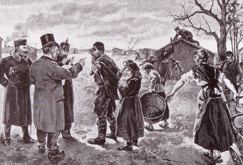 Arme und bedürftige Leute konnten ein Stückchen Land pachten und auf ihm Gemüse und Obst anbauen. Die Grafik zeigt, dass die Landverteilung unter den Augen der Polizei erfolgte. (Repros: Caspar)