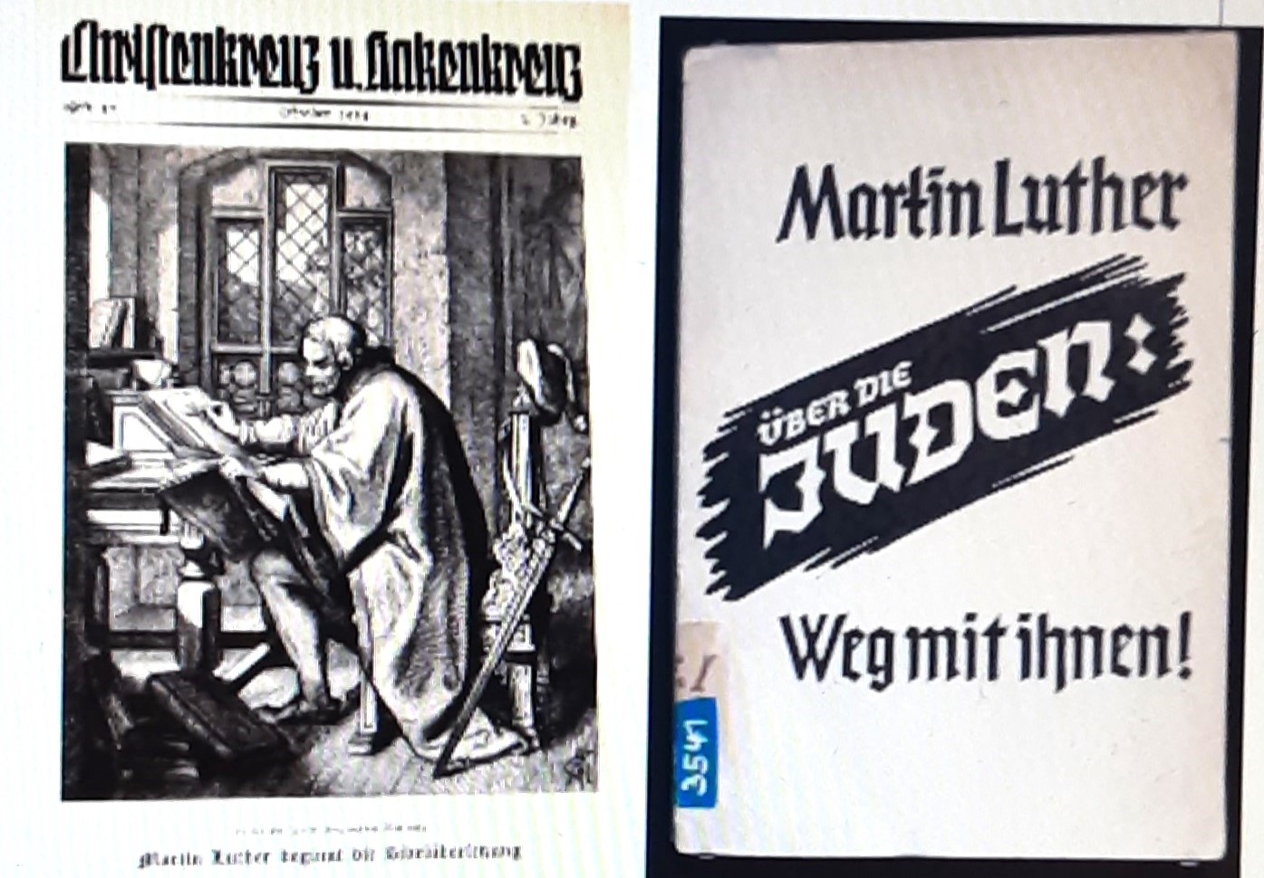 Bei der Durchsetzung der NS-Rassepolitik beriefen sich Politiker und Kirchenmänner oft auf Martin Luther, der im 16. Jahrhundert massiv gegen das „verdammte Volk der Juden“ hetzte und ihre Vertreibung forderte. Sein Pamphlet von 1543 erlebte in der NS-Zeit hohe Auflagen. Die Nazis sorgten dafür, dass Luthers Schmähschrift weithin bekanntgemacht und, was viel schlimmer war, auch befolgt wurde. Die von Walter Grundmann herausgegebene Zeitschrift „Christuskreuz und Hakenkreuz“ war eines der Sprachrohre der Deutschen Christen.