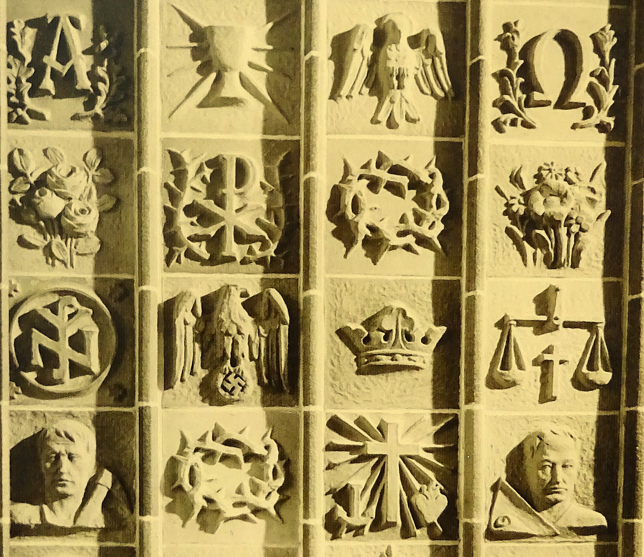 Die Martin-Luther-Gedächtniskirche in Berlin-Mariendorf dokumentiert die Verschmelzung von Christentum und Nationalsozialismus unter der Regie der Deutschen Christen. Bei der Grundsteinlegung im Oktober 1933 feierten sie Hitler als den „von Gott geschenkten Führer". Bei den Reliefkacheln des Triumphbogens hat der Bildhauer Heinrich Mekelburger christliche und nationalsozialistische Symbole verwendet. In der Vorhalle wurde das Hitler-Porträt gleich nach dem Krieg von den Amerikanern entfernt.