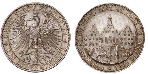 Die Freie Stadt ist auf Talern des 19. Jahrhunderts mit der Francofurtia und dem einköpfigen Stadtadler vertreten.