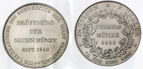 Die Eröffnung der Frankfurter Münze war 1840 die Prägung eines schmucklosen Doppeltalers wert.