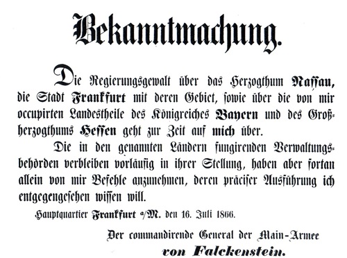 In rüden und keinen Widerspruch duldend forderten die Preußen ultimativ von den Frankfurtern und der Bevölkerung anderer Gebiete unbedingten Gehorsam. (Fotos/Repros: Caspar)