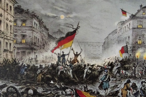 Die am 18. März 1848 in Berlin ausgebrochene Revolution kam nicht von ungefähr. Zuvor war in Frankreich das Königtum hinweg gefegt und eine Republik ausgerufen worden. Das im Februar 1848, kurz vor der Revolution in Frankreich, in in sechs Sprachen in London veröffentlichte „Manifest der Kommunistischen Partei“ von Karl Marx und Friedrich Engels beginnt und endet mit Sätzen, die zu geflügelten Wörtern wurden, nämlich „Ein Gespenst geht um in Europa – das Gespenst des Kommunismus“ und „Proletarier aller Länder, vereinigt euch!“ Alle Mächte des alten Europa hätten sich zur heiligen Hetzjagd gegen das Gespenst des Kommunismus verbündet, es sei hohe Zeit, dass die Kommunisten ihre Anschauungsweise, ihre Zwecke, ihre Tendenzen vor der ganzen Welt offen darlegen und dem Märchen vom Gespenst des Kommunismus ein Manifest der Partei selbst entgegenstellen. Marx und Engels zufolge ist die Befreiung der Menschheit von Ausbeutung und Unterdrückung Sache des modernen Proletariats und kann nur durch Zusammenschluss der unter den gleichen Bedingungen leidenden Arbeiter über Ländergrenzen hinweg erreicht werden.