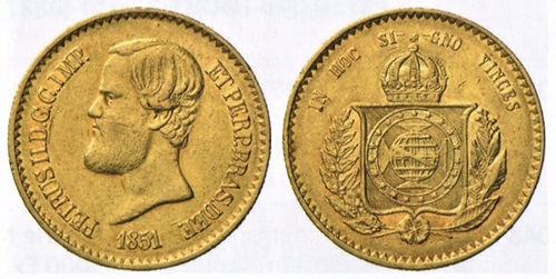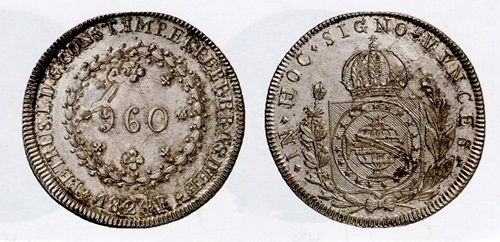 Auf der Silbermünze zu 960 Reis von 1824 wird Pedro I. Kaiser von Brasilien genannt. Die Goldmünze zu 5000 Reis bildet Kaiser Pedro II. ab. Der Wert, den die Münze A abgebildet.repräsentiert, ist nicht extra vermerkt.