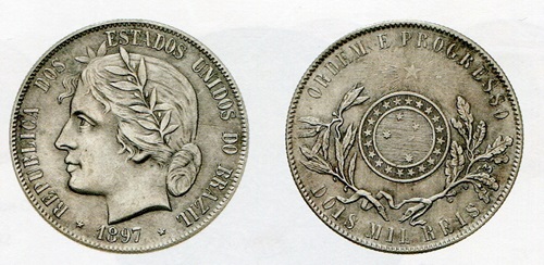 Auf der Ausgabe von 1897 zu 2000 Reis und vielen anderen Geldstücken ist auf der Rückseite mit dem in einem aus Sternen gebildeten Kreis mit dem markante Sternbild „Kreuz des Südens“ geschmückt.