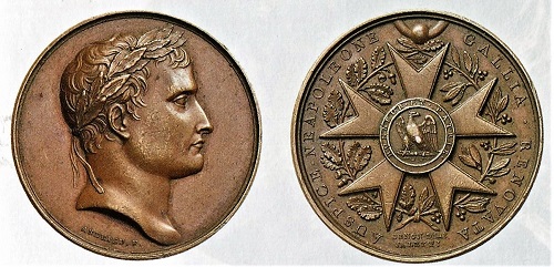 Der 1802 vom Ersten Konsul Napoleon Bonaparte, ab 1804 Kaiser Napoleon I., gestiftete Orden der Ehrenlegion ist mit einem Kranz aus Lorbeer- und Eichenzweigen geschmückt.