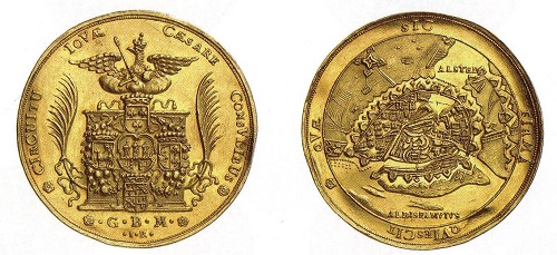 Offenbar war das Bedürfnis groß, Macht, Würde und internationale Ausstrahlung der Hansestadt für alle Zeiten auch in kostbarem Material darzustellen. Hamburg zeigt sich darauf im Schmuck seiner vielen Kirchen und eingefasst von starken Bastionen zur Abwehr feindlicher Truppen. Talentierte Stempelschneider schnitten eindrucksvolle Stadtansichten von der Elbe aus, die erst in hundert Kilometern die offene Nordsee erreicht. Große Frachter mit geblähten Segeln und kleine Boote schaukeln im Wasser, vom Himmel ausgesandte Strahlen besagen, dass den Hanseaten göttlicher Segen gewiss ist. Die Goldstücke mit dem Tor und zwei Türmen an der Seite und anderen Motiven, im Gewicht von zweieinhalb bis zehn und mehr Dukaten sind bei Sammlern unter dem Begriff Portugaleser bekannt.