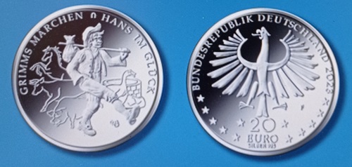 Die deutsche Münzserie mit Motiven aus den Märchen der Brüder Grimm erwies sich als Verkaufsschlager. Auf ihnen sind markante Szenen dargestellt, die in Erinnerung sind, wenn man schon längst aus dem Alter der Märchenleser ist. Ausgegeben wurden als Zwanzig-Euro-Münzen folgende Motive: 2013 Schneewittchen (Gestalter: Bastian Prillwitz), 2014 Hänsel und Gretel (Marianne Dietz), 2025 Dornröschen (Marianne Dietz), 2016 Rotkäppchen (Elena Gerber), 2017 Bremer Stadtmusikanten (Elena Dietz), Froschkönig (Anne Karen Hentschel), 2019 Das tapfere Schneiderlein (Marianne Dietz), 2020 Der Wolf und die sieben Geislein (Adelheid Fuss), 2021 Frau Holle (Jordi Truxa), 2022 Rumpelstilzchen (Katrin Pannicke) und 2023 Hans im Glück (Michael Otto).