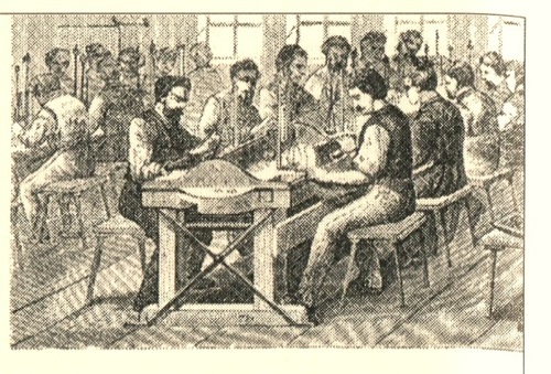 Die Grafik aus der Zeit um 1900 zeigt, dass bei der Prüfung der Ronden beziehungsweise der fertig geprägten Geldstücke viel Handarbeit benötigt wurde.
