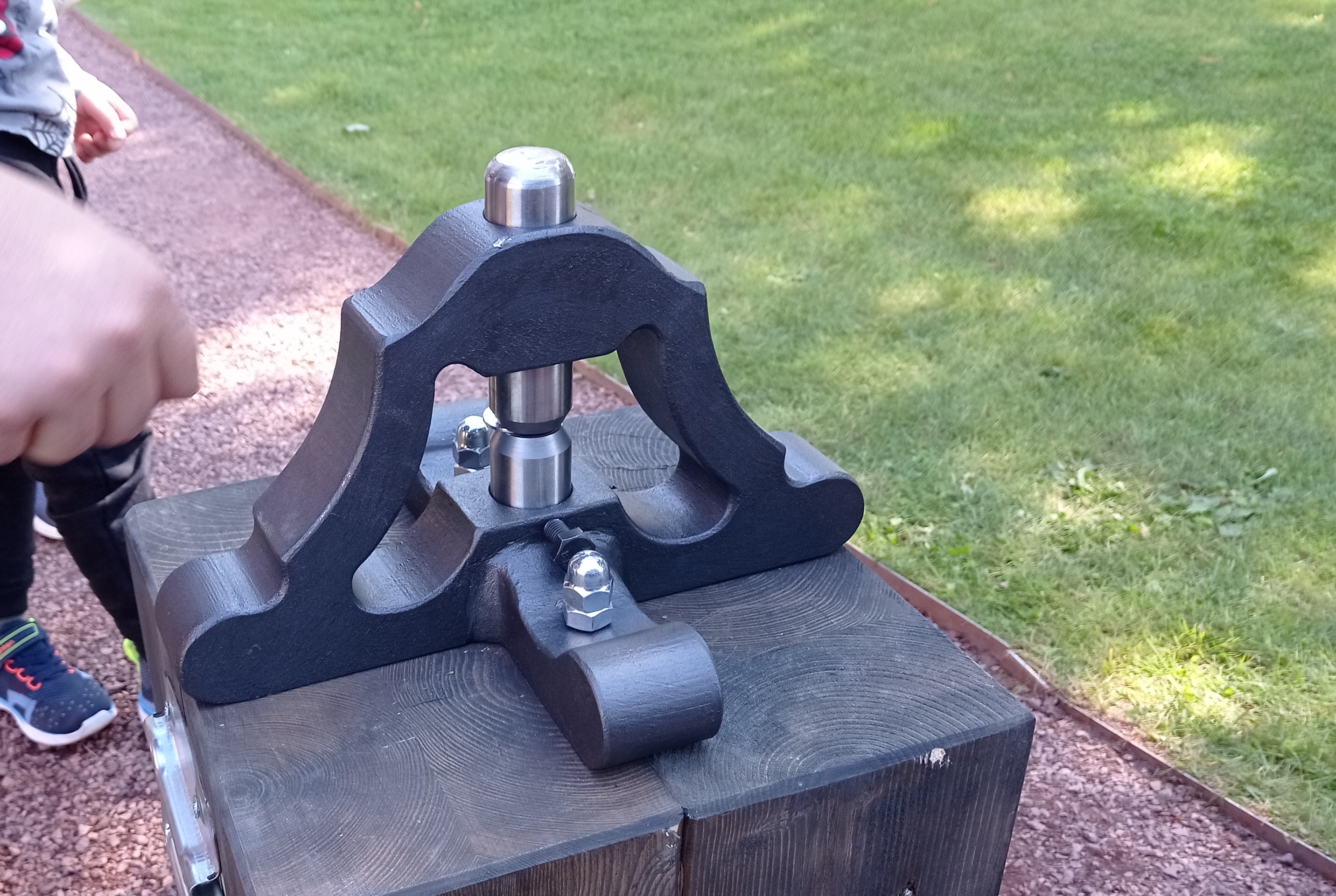 Auf einem starken Holzklotz befestigt, bot der Nachbau eines historischen Klippwerk Besuchern Gelegenheit, unter Anleitung von ortsansässigen Münzfreunden Erinnerungsmedaillen in der Art thüringischer Reiterbrakteaten herzustellen.