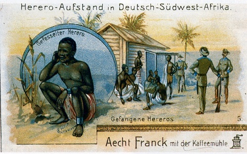In Kolonialausstellungen, auf bunten Reklamebildchen und auf andere Weise wurden in der Kaiserzeit die Verbrechen deutscher Eroberer in Leistungen zur „Zivilisierung“ der indigenen Völker umgedeutet. (Fotos/Repros: Caspar)