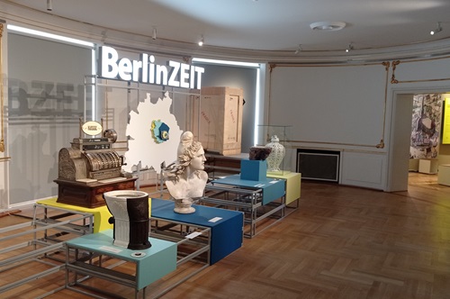 „BerlinZEIT“ präsentiert mehr als 300 Originalobjekte, sie reichen von winzigen Hundemarken bis zu meterhohen Installationen. Ausgerichtet an prägenden Jahren nimmt BerlinZEIT Besucherinnen und Besucher mit auf eine Reise durch die Jahrhunderte. Der Rundgang beginnt bei den Anfängen der Stadt um 1200 und ihrer feindlichen Übernahme durch die Hohenzollern im 15. Jahrhundert, die hier und in Preußen bis zur Novemberrevolution 1918 das Sagen hatten. Gezeigt wird der Aufstieg der eher beschaulichen Residenzstadt zur Millionenmetropole und zum Zentrum von Kunst, Kultur und Wissenschaft im Laufe 19. und frühen 20. Jahrhunderts. Die Dokumentation geht auf die unvollendet geblieben Revolution von 1848/49 ein, als es hieß „Schmiert die Guillotine mit Tyrannenfett“, schildert Prunk und Protz und das Elend zahlloser Menschen in der Kaiserzeit und wie es ihnen im Ersten Weltkrieg erging . Nachdem in der Novemberrevolution von 1918 Kronen und Throne auf den Müllhaufen der Geschichte gelandet waren, wurde die nicht sehr stabile Weimarer Republik ins Leben gerufen. In ihr griff ein neues, freieres Lebensgefühl um sich, und es wurden großartige Leistungen in der Wissenschaft, Kunst und Kultur vollbracht. Allein dieser Aspekt würde mehrere Räume füllen, aber die Ausstellung muss sich hier und bei anderen Themen auf wenige Exponate und Erklärungen beschränken. Da sie keine statische Schau ist, sollen künftig immer wieder neue Exponate an spezielle Freistellen gezeigt werden.