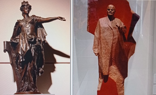 Die bronzene Schutzpatronin Berolina stand auf dem Alexanderplatz, existiert aber schon lange nicht mehr. Das kleine Modell zeigt im Ephraimpalais, wie sie die Bewohner der Reichshauptstadt grüßt. Das Lenin-Denkmal auf dem damaligen Leninplatz, dem heutigen Platz der Vereinten Nationen, fiel dem Bildersturm nach der Wiedervereinigung zum Opfer. Der Kopf kann in der Spandauer Zitadelle mit anderen geretteten Standbildern besichtigt werden.