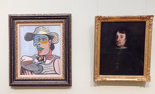 Durch Studium, Neuinterpretation und Adaption der Werke früherer Generationen arbeitete Picasso die Bedeutung der Auseinandersetzung mit der Vergangenheit heraus, um die Gegenwart verstehen und ausdrücken zu können. Jeweils zwei oder drei Werke werden in der Ausstellung gegenüber-gestellt, und es wird dabei auf verbinde Themen verwiesen. So kann man Frauenporträts auf Gemälden des 17. Jahrhunderts und mit solchen von Pablo Picasso vergleichen. Die Ausstellung zeigt Portraits, die als Mittel zur öffentlichen Selbstdarstellung früher und auch heute in Form von digitalen Selfies dienten.