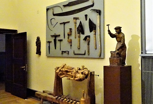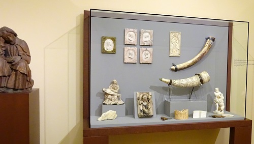 Auf dem Weg zur neuen Picasso-Ausstellung zeigt die Skulpturengalerie Figuren aus Elfenbein aus und wie eine Holzfigur geschnitzt wird.