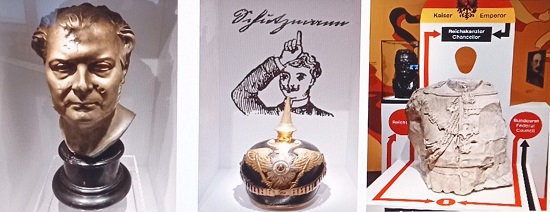 Breiten Raum nehmen in der Ausstellung die Zeit des Nationalsozialismus 1933 bis 1945, der Zweite Weltkrieg und der Massenmord an den Juden und anderen nicht ins rassistische Konzept der Nazis passenden Menschen ein und wie es dazu kam, dass Hitler vor nunmehr 90 Jahren an die Macht gelangen konnte. Die Ausstellung unterstreicht nachdrücklich, dass sich seine Steigbügelhalter gründlich in der Hoffnung täuschten, ihn und seine Leute „einzurahmen“, wie der deutschnationale Medienmogul Alfred Hugenberg Anfang 1933 sagte. Weiter zurückgehend werden die Risiken, Spannungen und politischen Chancen in der nach dem unblutigen Abgang der deutschen Fürsten und dem verlorenen Ersten Weltkrieg (1914-1918) gegründeten Weimarer Republik beleuchtet und auch gezeigt, wie die Weltwirtschaftskrise von 1929 den Aufstieg der Nazipartei beschleunigte. Dass viele Deutsche der jungen Republik den Garaus wünschten und sich in angeblich gute alte Zeiten zurück sehnten, wird ebenfalls an Beispielen geschildert. Am Ende blicken die Besucher auf die Einigungskriege von 1864 bis 1871 und die Reichsgründung am 18. Januar 1871 und erfahren, warum die Revolution von 1848/9 scheiterte. Wäre sie anders verlaufen, hätte sie die von vielen Menschen erhoffte Freiheit und Demokratie gebracht, so aber führte sie zum Triumph der Fürsten. Deutlich wird, dass eine Niederlage oder Fehlentwicklung die Grundlage neuer Probleme bildete. Zu sehen ist, dass der Erste Weltkrieg und seine Ergebnisse das Fundament für den Aufstieg rechter und linker Kräfte und den Triumph der Nationalsozialisten bildeten.