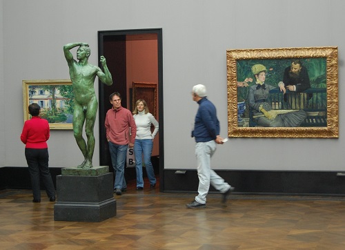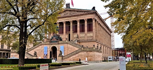 Für die sich schnell vergrößernde Nationalgalerie entwarf Friedrich August Stüler ein wie ein antiker Tempel gestaltetes Gebäude auf der Berliner Museumsinsel, das von Johann Heinrich Strack vollendet und 1876 eröffnet wurde. Zwar verkündet die Giebelinschrift in vergoldeten Buchstaben DER DEUTSCHEN KUNST, doch geht die Galerie weit darüber hinaus und enthält hochkarätige Gemälde und Skulpturen großer ausländischer Künstler. Auf drei Etagen sind Gemälde und Skulpturen aus der Zeit zwischen Französischer Revolution (1789) und Erstem Weltkrieg (1914)versammelt. Nahezu alle Künstler, die in dieser Zeit Rang und Namen hatten, sind vertreten. Darunter befinden sich viele Meister der klassischen Moderne, die mit dem Kunstgeschmack der Kaiserzeit kollidierten, nicht in den Genuss staatlicher Förderung kamen und auch nicht in dem Kunsttempel auf der Museumsinsel ausstellen durften, sondern sich andere Räume suchen mussten und welche fanden.