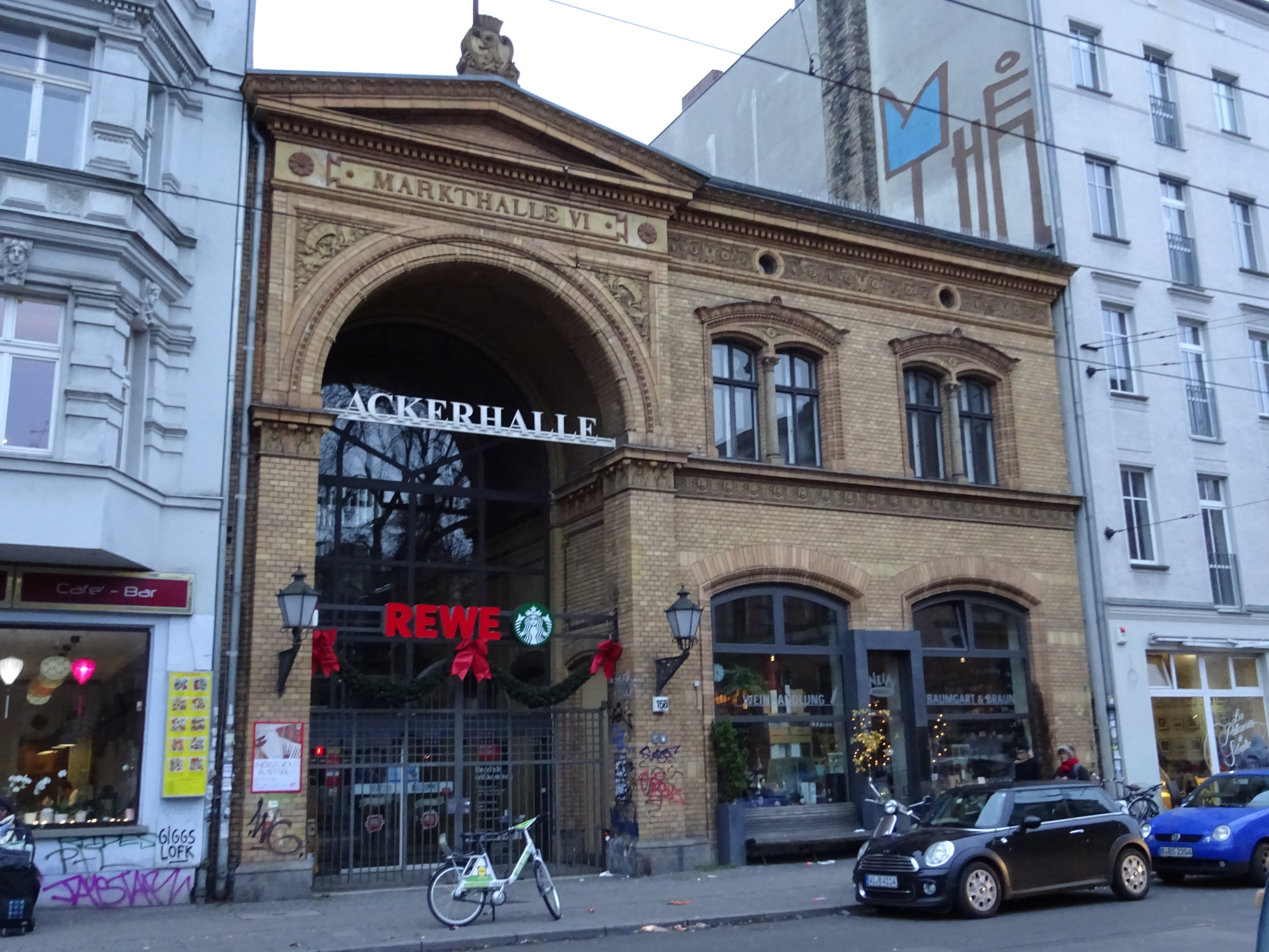Die Markthalle VI an der Ackerstraße („Ackerhalle) ist außen original erhalten, im Inneren aber sehen die Verkaufsstände ganz anders als zur Kaiserzeit aus.