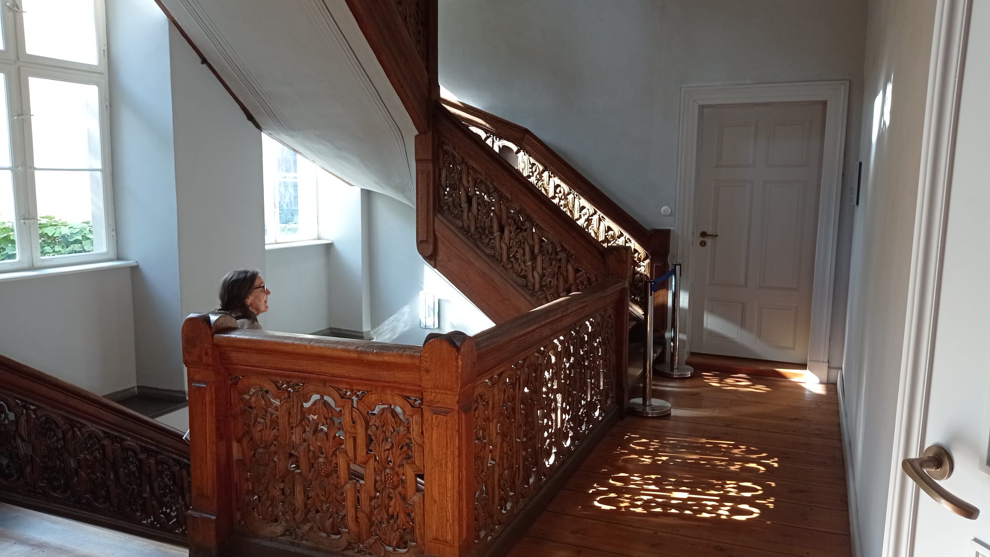 Wie durch ein Wunder hat die barocke Eichentreppe alle Krisen und Kriege überstanden. Von grünem Linoleumbelag aus DDR-Zeiten befreit (über den sich der bei der Denkmalpflege in dieser Zeit beschäftigte Verfasser stets geärgert hat), wüsste sie von illustren Gästen und festlichen Zusammenkünften erzählen.