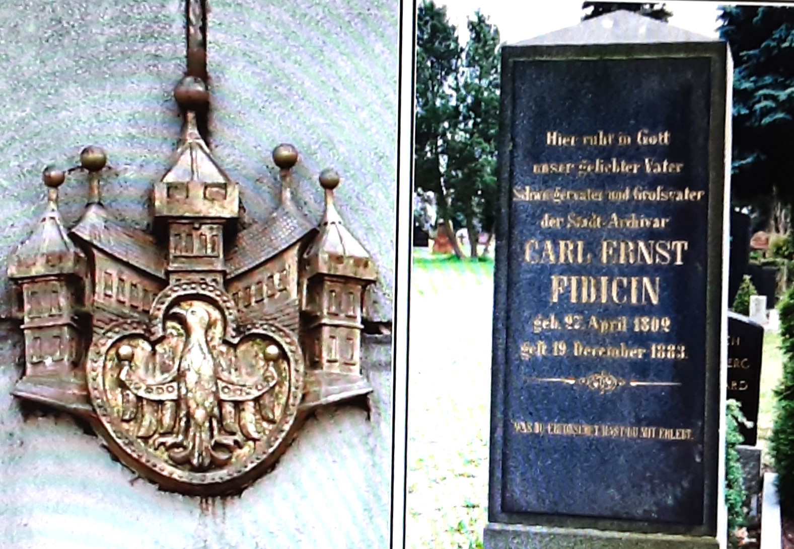 Als man in Berlin-Cölln noch mit Adlern und Bären siegelte - hier eine Nachbildung im Nikolaiviertel, schrieb man alles von Belang auf Pergament und Papier. Um dem Verlust der Urkunden vorzubeugen, wurde das Stadtbuch angelegt. Das Grab des Stadtarchivars Ernst Fidicin befindet sich auf dem Alten Luisenstädtischen Friedhof am Berliner Südstern.