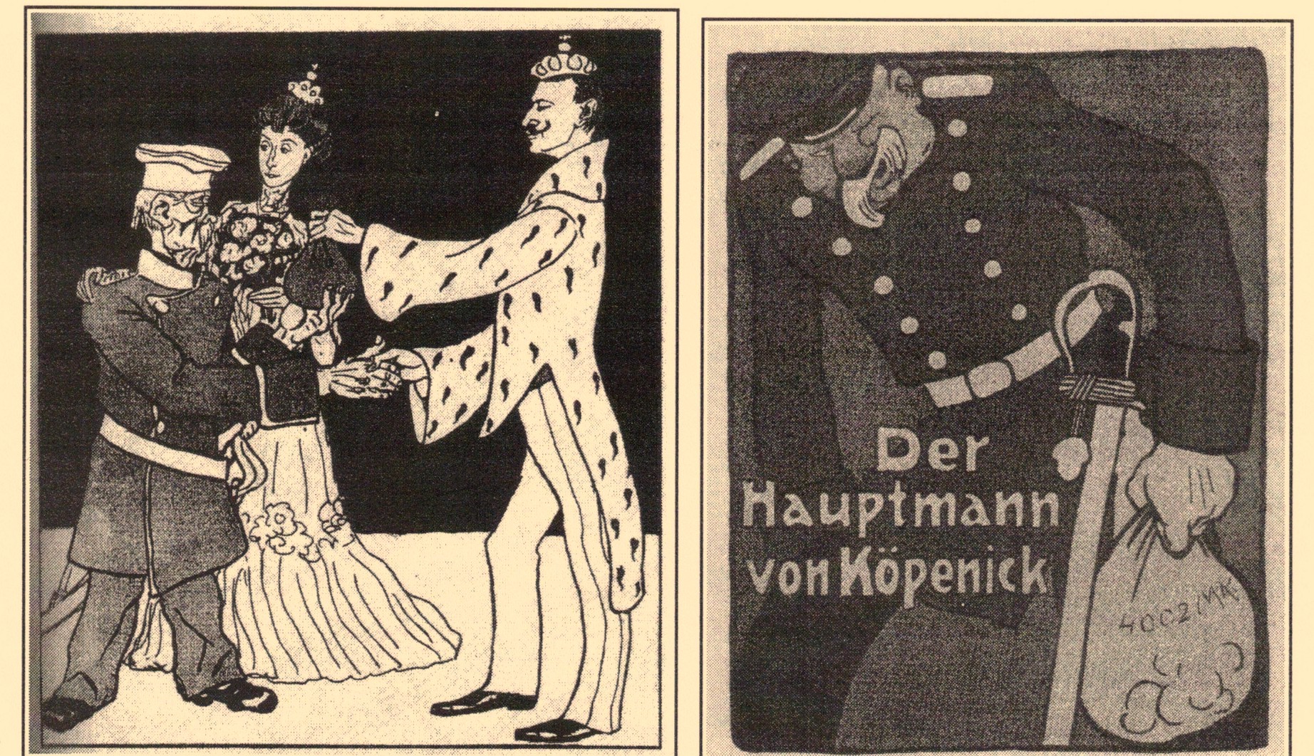 Da die Schlacht von Jena und Auerstedt von 1806 zwischen Preußen und Frankreich fast auf den Tag genau einhundert Jahre zurücklag, stellte man auch hier Vergleiche an. Ein Möchtegern-Hauptmann mit einer Handvoll Soldaten schafft es, den preußischen Staat und seine Gebrechen vorzuführen. 1806 brauchte Frankreich dafür eine ganze Armee.