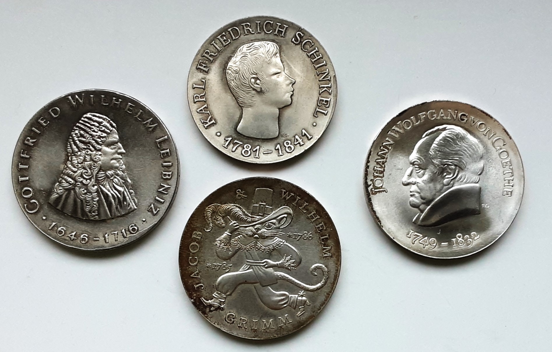 Als die DDR 1966 ihre ersten Gedenkmünzen aus Silber zu 10 (Schinkel) und 20 Mark (Leibniz) ausgab, herrschte unter Sammlern große Aufregung. Die Älteren unter uns erinnern sich noch, welches Gerangel es um die Novitäten gab. Wer einer Kulturbundgruppe angehörte und immer hübsch die Versammlungen besuchte, Vorträge hielt und Ausstellungen gestaltete beziehungsweise bewachte, konnte einen vorderen Platz auf der Warteliste erhalten. Wer dann die bis zum Ende der DDR 1990 geprägten Gedenkmünzen ergattern konte, hatte einen schönen Schatz beisammen, der damals viel Geld kostete, im Laufe der Zeit aber im Wert wieder sank.