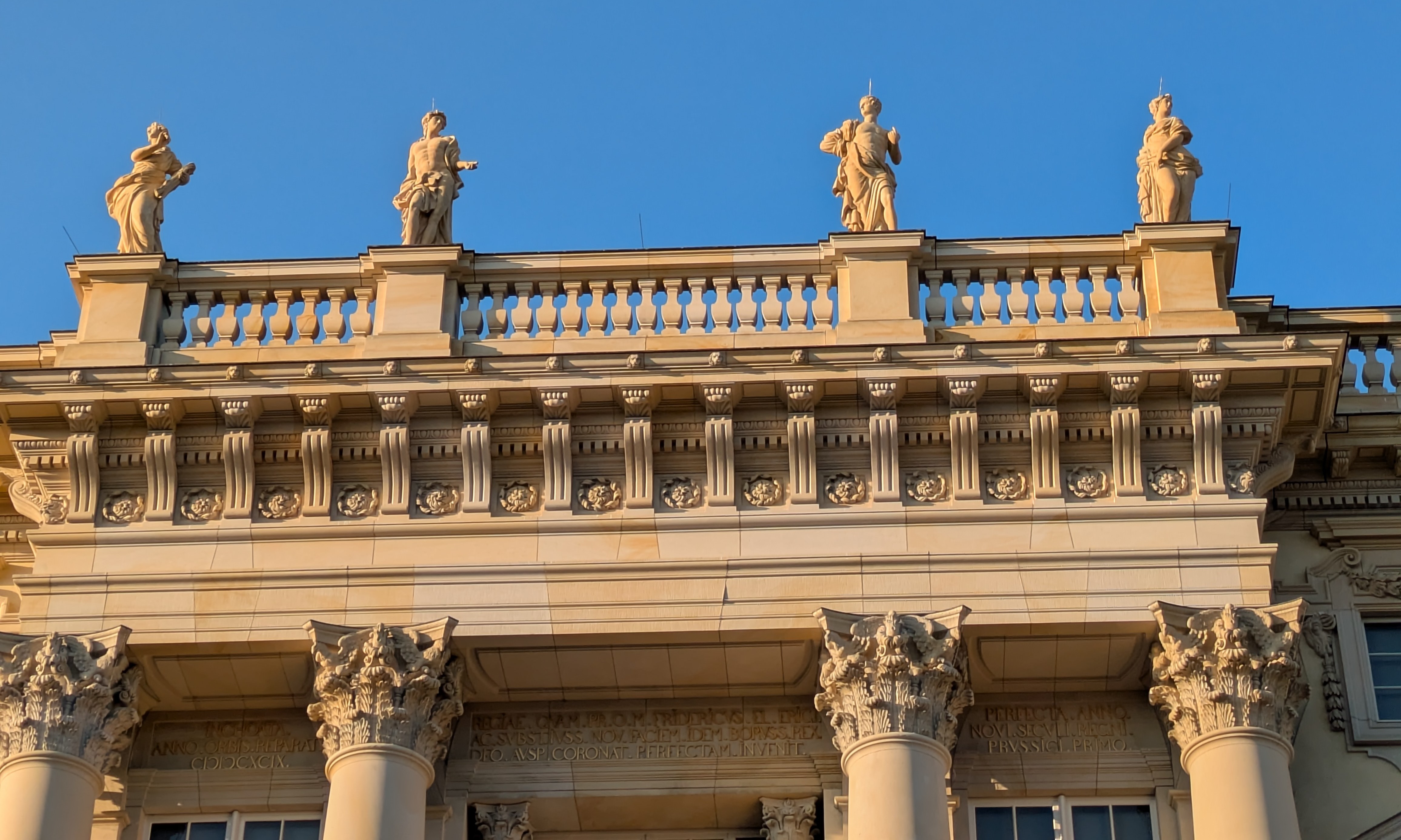Auch ohne Ausstellungen, Konzerte und Vorträge ist das Humboldt Forum zu jeder Zeit einen Besuch wert. Die Figuren auf der Attika und über den Portalen sind barocken Vorbildern nachempfunden.