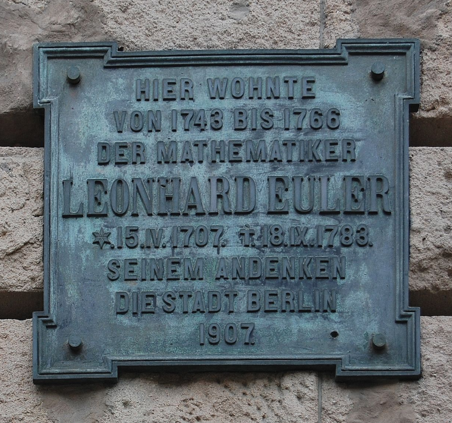 Gedenktafel für den Schweizer Leonhard Euler in der Behrenstraße 21/22, Berlin-Mitte.