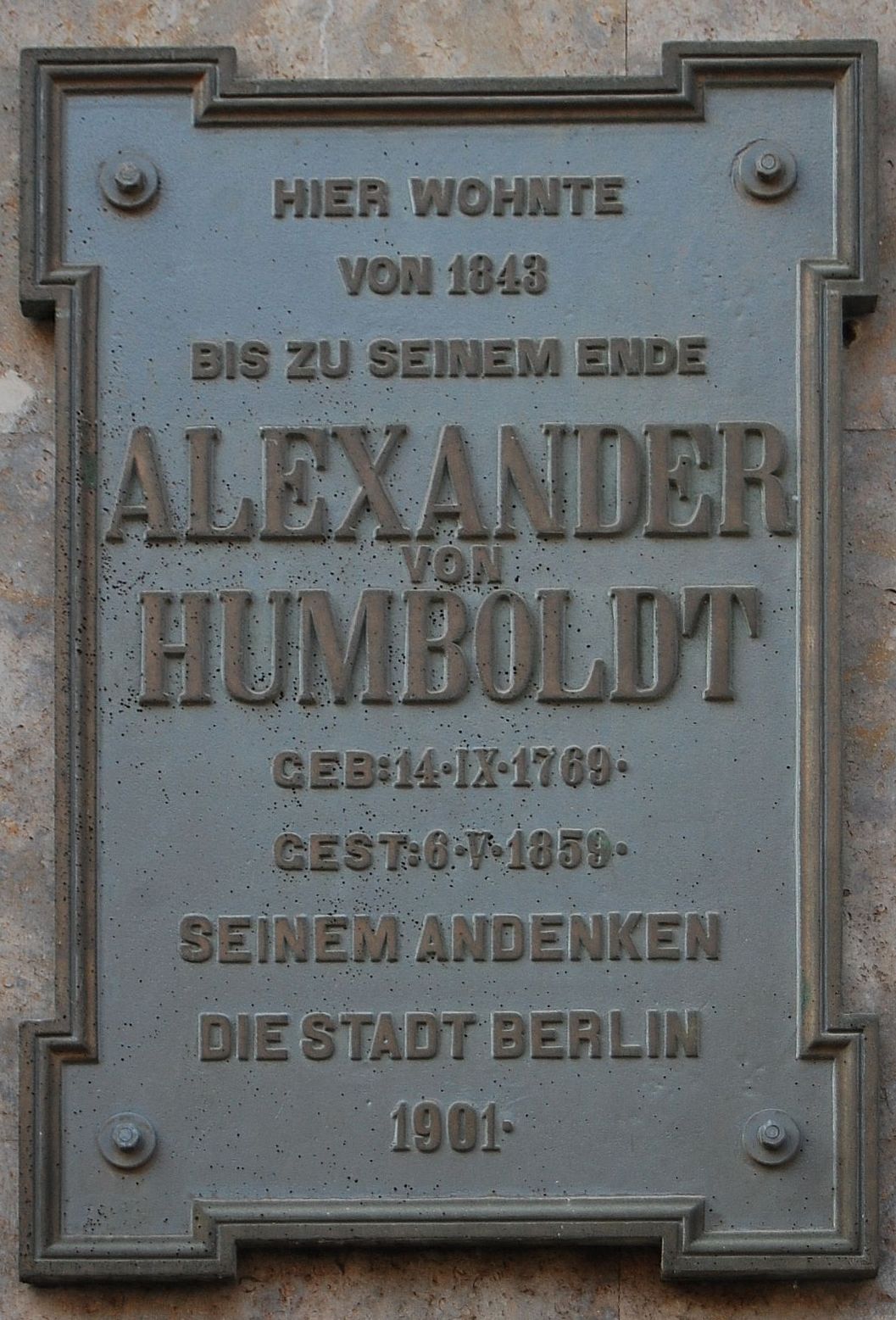 Tafel am ehemaligen Wohnhaus Alexander von Humboldts in der Oranienburger Straße