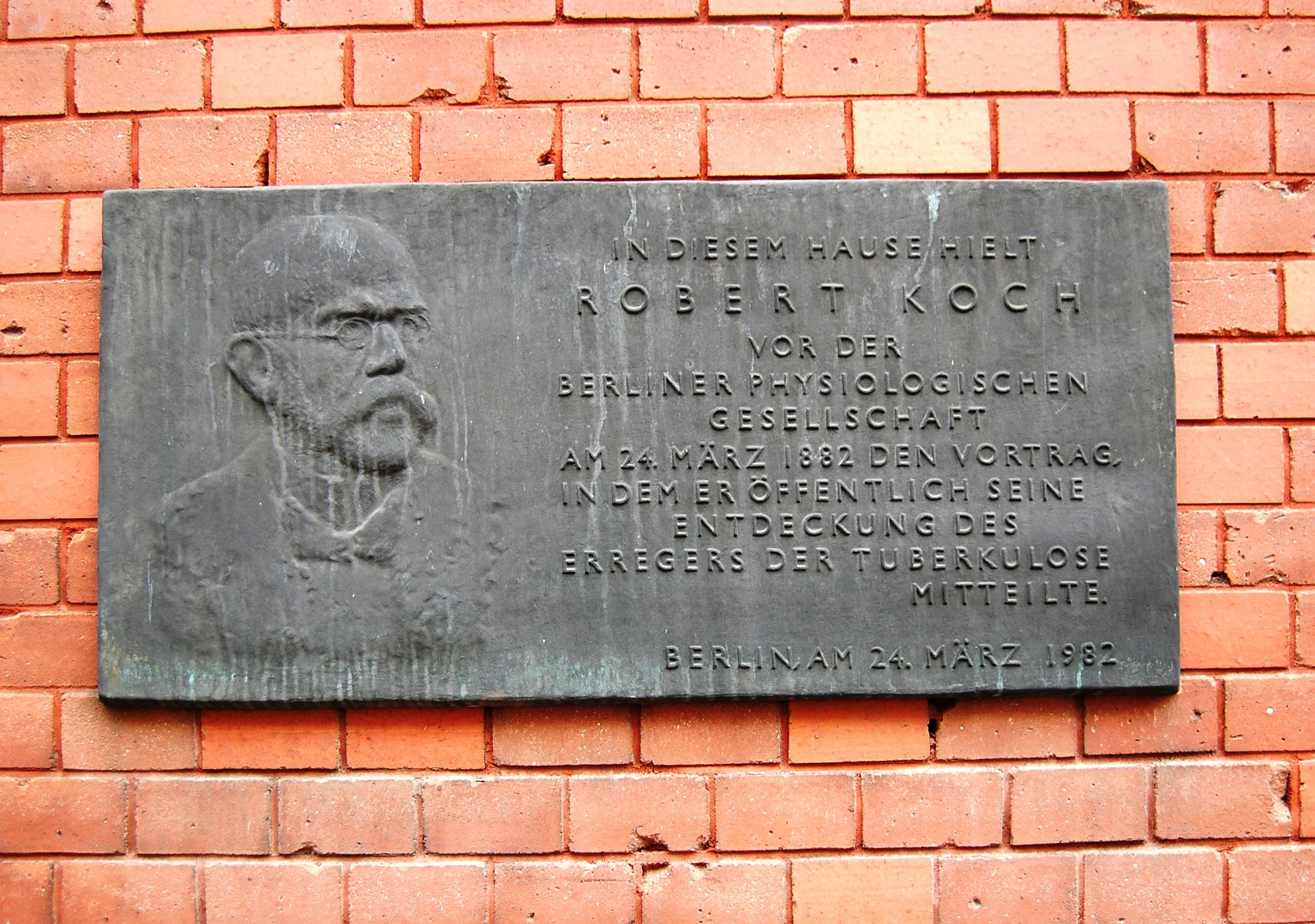 Der berühmte Bakteriologe Robert Koch erhielt am Haus Dorotheenstr. 96 (Bezirk Mitte) eine ehrende Inschrift mit Porträt.