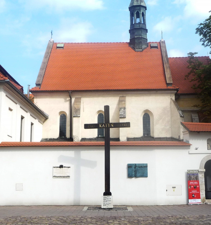 Ein schlichtes Erinnerungs-Holzkreuz steht in Krakau.