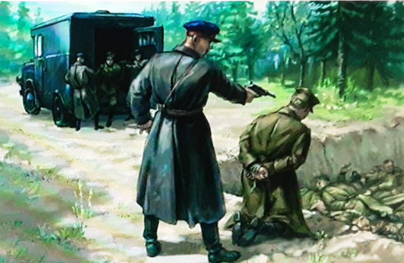 Im April 1943 fanden deutsche Soldaten in der Nähe von Katyn bei Smolensk Massengräber mit den sterblichen Überresten von mehr als 4400 polnischen Offizieren, die drei Jahre zuvor erschossen worden waren. Die Nazi-Propaganda lastete das Verbrechen sofort der Sowjetunion an, was aber von ihr vehement bestritten wurde. Stalin, der zwischen August 1939 und Juni 1941 noch Hitlers „bester Freund“ und mit ihm durch einen Nichtangriffspakt verbunden war, stand als Massenmörder da. Nach dem Zweiten Weltkrieg und während des Nürnberger Kriegsverbrecherprozesses 1945/6 drehte die Sowjetunion den Spieß um und schob das Massaker den Deutschen in die Schuhe.